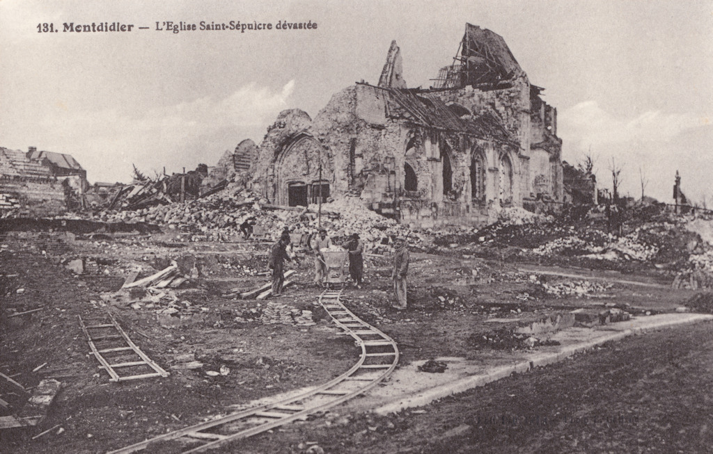 | Légende principale | 181. Montdidier - L'Eglise Saint-Sépulcre dévastée |